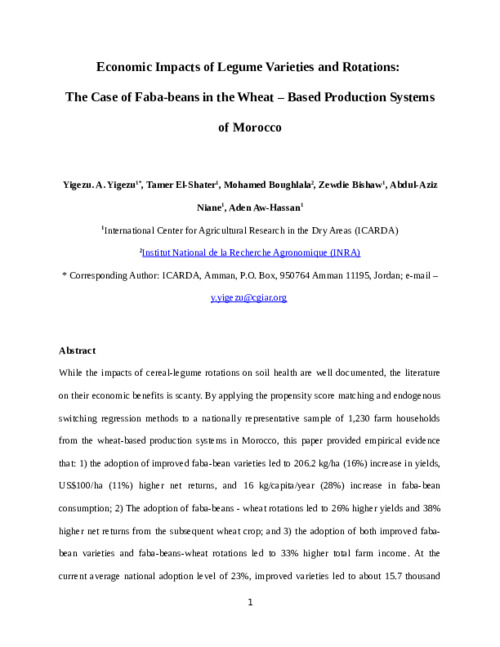 Specifically, low productivity of wheat-legume cropping systems combined with the dependence on wheat and legumes of poor smallholder farmers of the drylands for their livelihoods as well as the lack of integration of rural communities in areas with scarce water resources are major problems severing the development of the local environment.